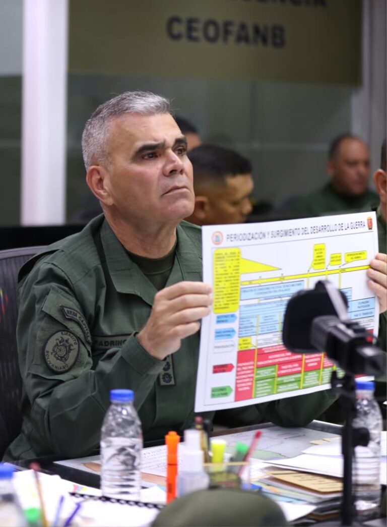 Caracas 01 de octubre 2025 – El General en Jefe Vladimir Padrino López, Vicepresidente Sectorial de Defensa y Soberanía ,Ministro del Poder Popular para la Defensa, liderizó una crucial videoconferencia de trabajo con la intención de reforzar los fundamentos de la Doctrina Militar Bolivariana y consolidar las estrategias de Defensa Integral de la Nación .